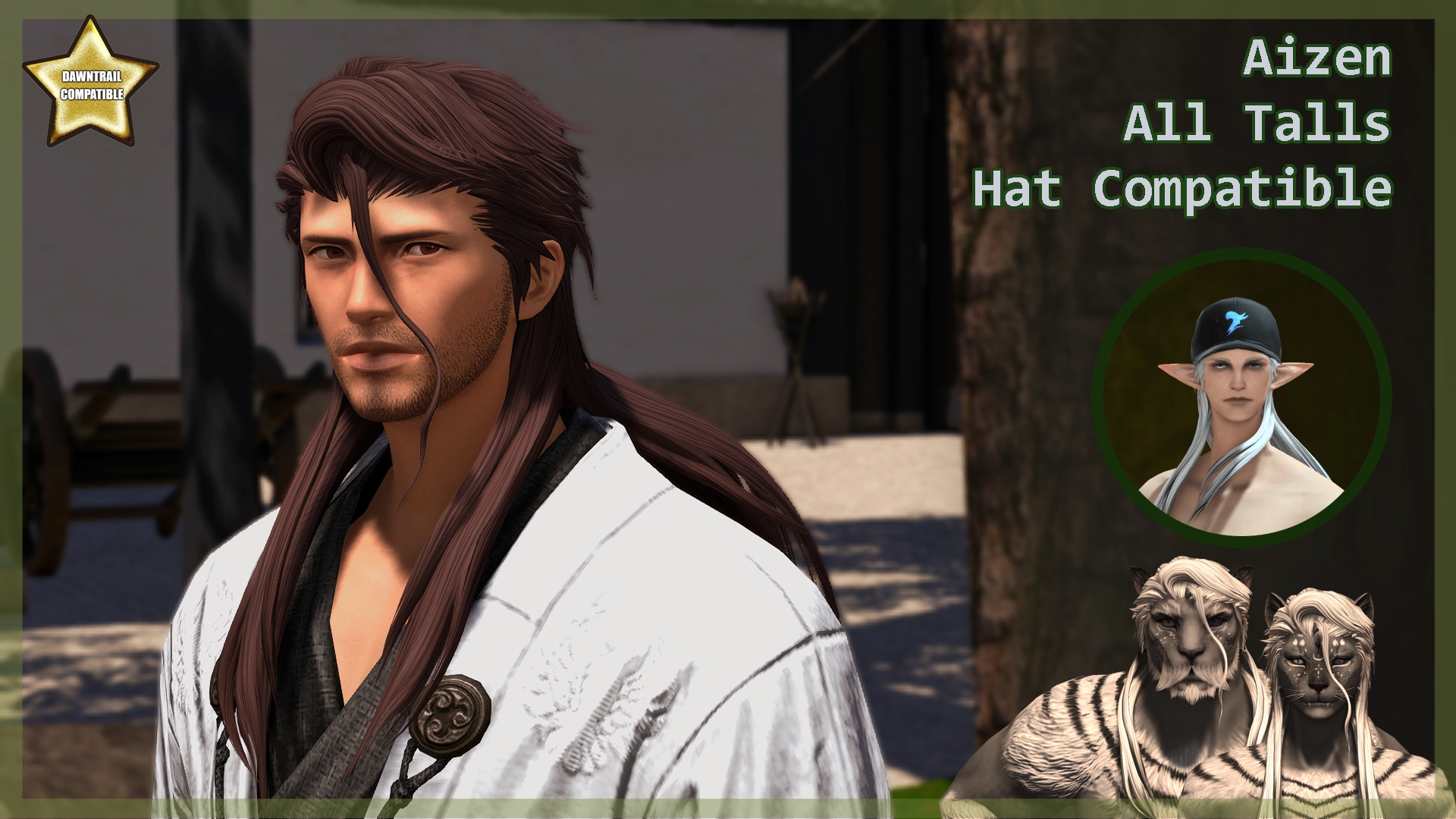 A Bleach Mobile 3D port of Aizen's hair I HEAVILY modified + mashed with a vanilla hair to work within FFXIV. Replaces hair #162 on all talls except Femhroth, who has their replacement on #178. Hat compatible to the best of my ability.Uses slightly modified vanilla hair textures from Clive's hair and Hair #162; all races except hrothgars use the male and female midlander materials; Hrothgars use their own materials.★ Notes: I burned out while getting this on all talls. Some models may look and move better than others. I was only able to get one other person to test it so forgive me if it's not perfect. If anything is especially egregious please let me know.★ Known issues: There's a gap at the base of the skull for all models I forgor to fill. It's not visible unless you do an upskirt on the hair. May have funky stretching/gaps in more extreme poses. Hroth/MRoe/MAura may clip at the back of the neck when jumping. Maybe I'll update the mod with adjusted weights for them once I'm not so god damn tired. Not compatible with IVCS.★