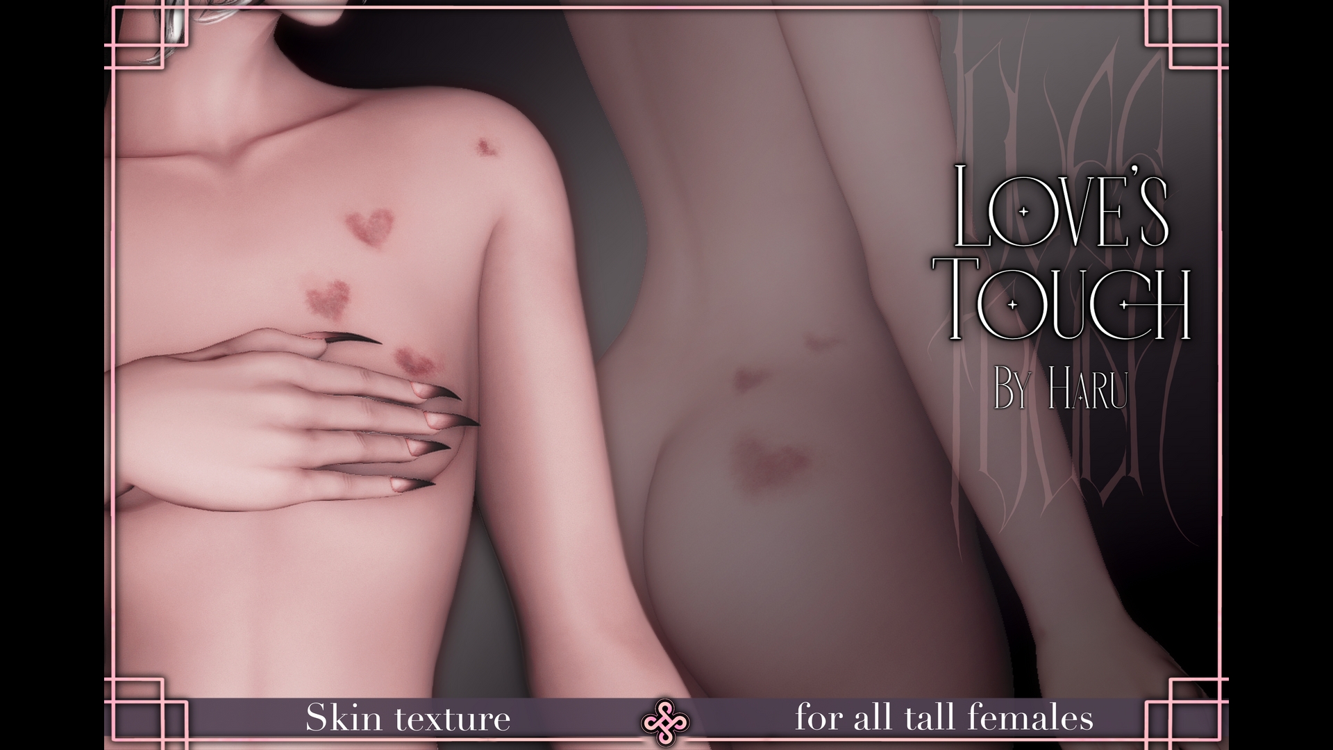 Love's touch - heart bruises for tall females (bibo+based bodies)▃▃▃▃▃▃▃▃▃▃▃▃▃▃▃▃▃▃▃▃▃▃▃▃▃▃Comes with:- 2k and 4k overlay maps (transparent)- base map + raen skintone map (scaleless)- 4k texture scaleless modpack▃▃▃▃▃▃▃▃▃▃▃▃▃▃▃▃▃▃▃▃▃▃▃▃▃▃General