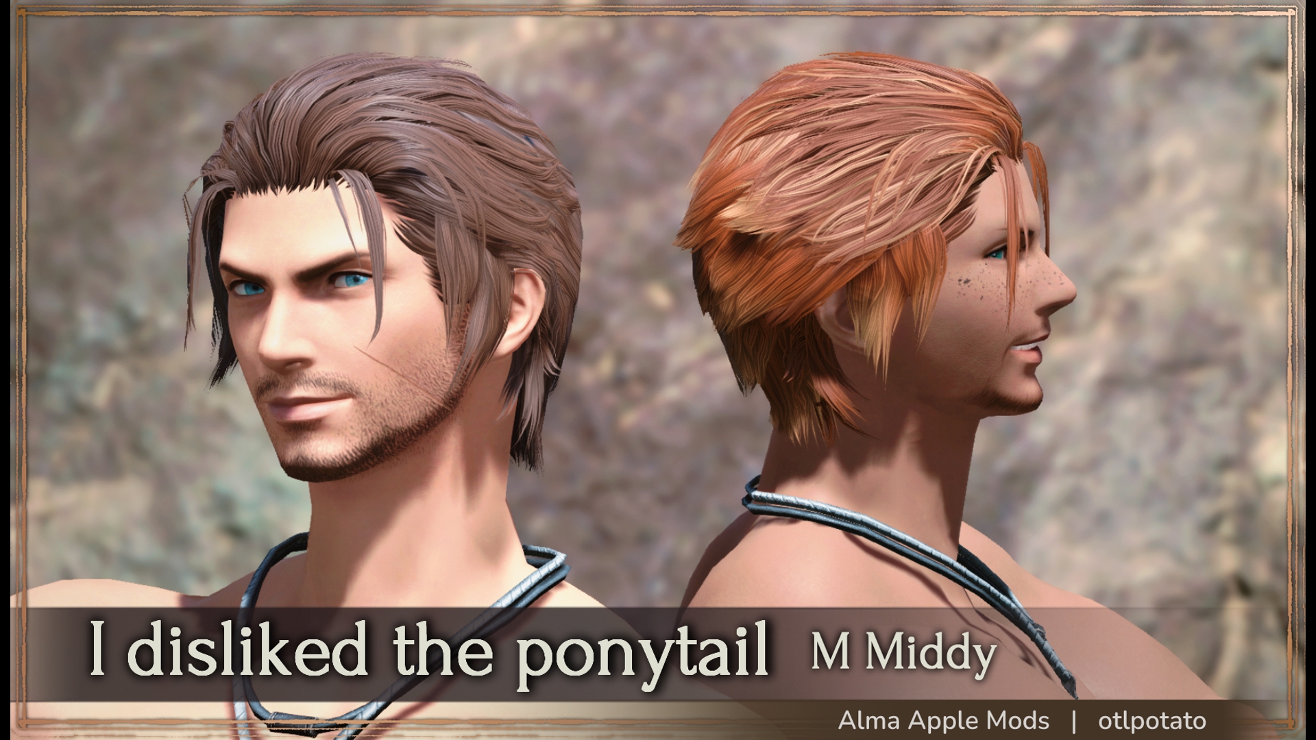 Requested to port from my au ra version, so I tried my best!A mashup of the following hairs: 120, 178, 122, and extra bitties from 131.Set to fit on M Midlander 120.Darker hair with lighter gradients pop well. Opposite does not.Weights are also prob silly. Baby's first mashup.[