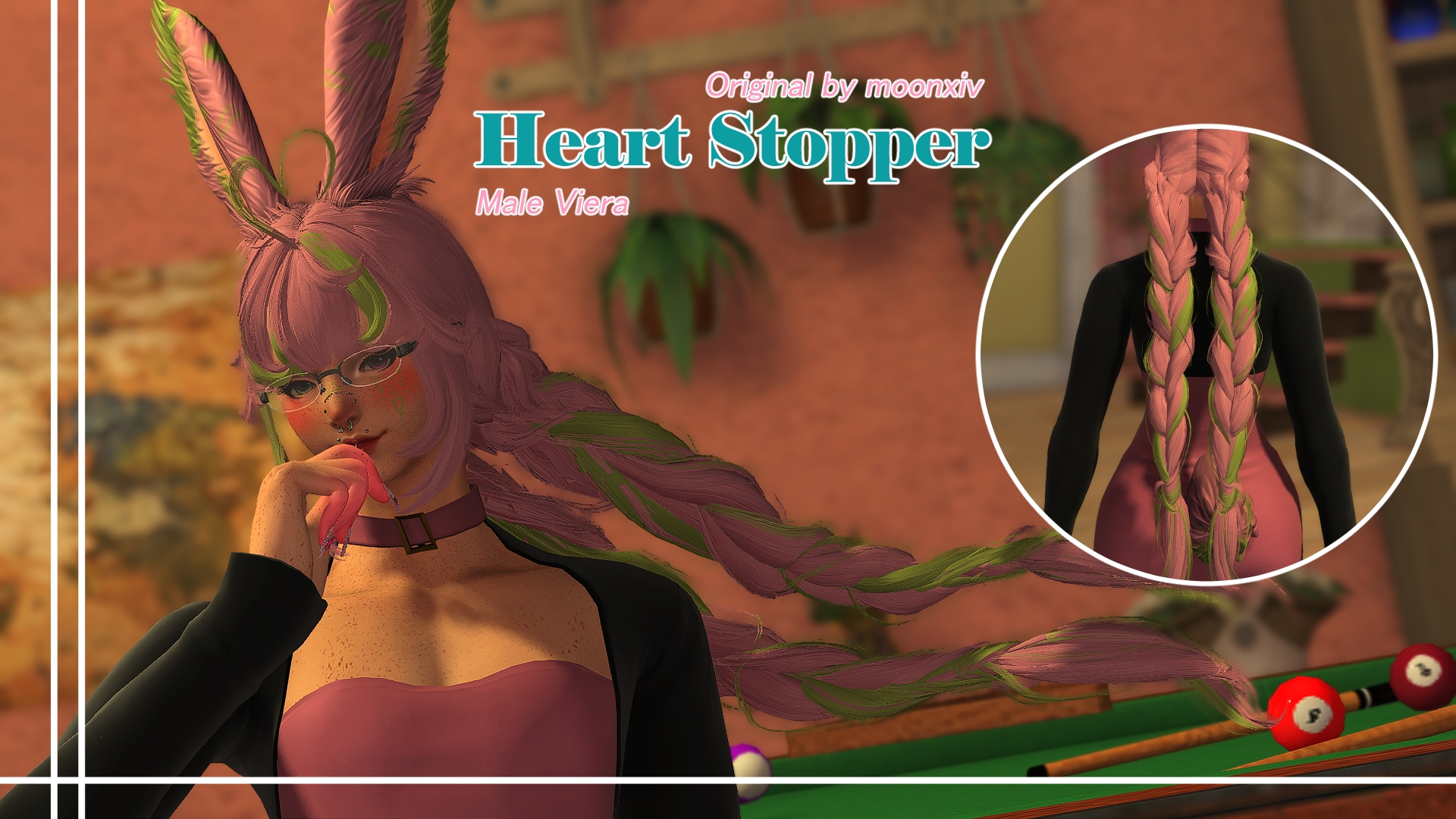 A port of Moon's Heart Stopper hair to MViera.Replaces: Hair 162Race & Gender: Male VieraI give credit to moonxiv for making the original mashup.Original mod here: https://www.xivmodarchive.com/modid/146374