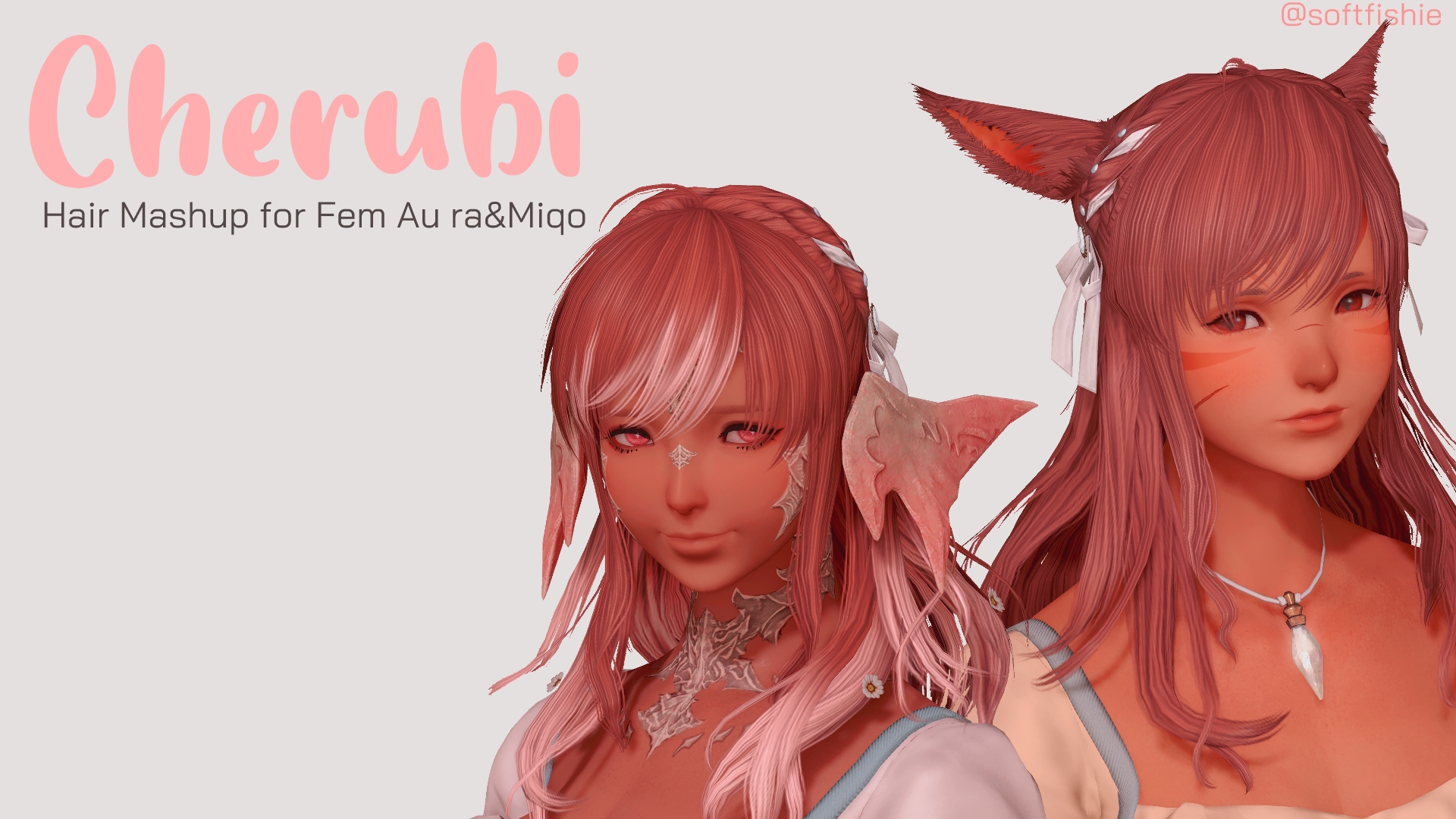 A hair mashup idea a friend wanted! Edited the highlights to make them stand out better, this hair is poseable with the "other" bones rather than the regular hair ones ^^Replaces : Hair 181Race/Gender : Female Au Ra and Miqo'te