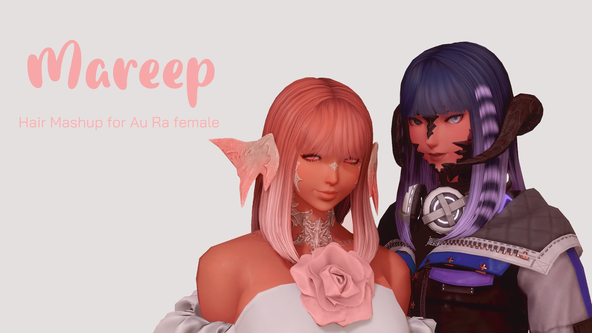 Quick lil mashup to give it full bangs and highlight edit! Alt version includes a racooon tail print Replaces : Hair 187Race/Gender : Female Au Ra