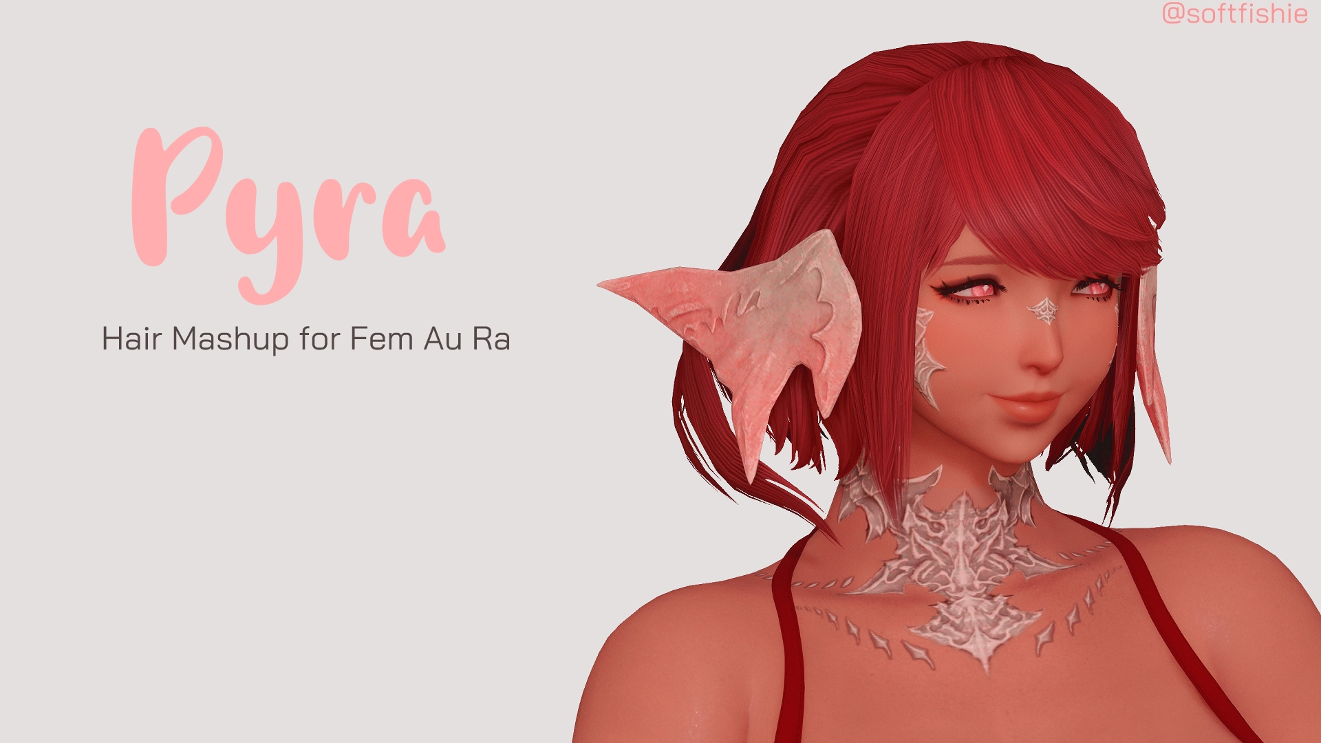Hair based on Pyra from Xenoblade 2 ♥ I put most of the hair on ex bones because i’m silly so that’s the posing bones for this, I did my best to make the back hair poseable but it isn’t perfect ;u;Not hat compatible as I couldn’t get it too look right sorry!!!Has highlights!And yes, I will make Mythra, possibly Nia too hehehReplaces : Hair 7Race/Gender : Female Au Ra