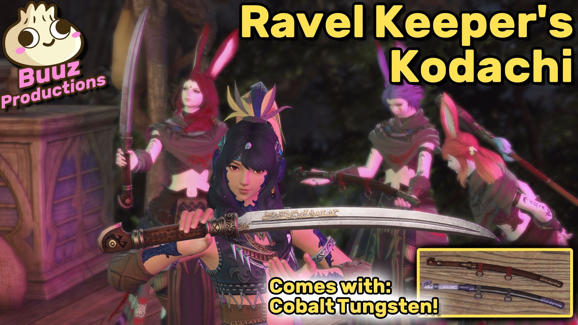 ----DESCRIPTION----Introducing the beloved Japanese short sword to The First! This beautiful Kodachi is perfect for slicing through thick brush in the forest, or protecting yourself from any Eulmorian creeps! This mod affects the Cobalt Tungsten Blade as well if you love purple!Thank you to the kind soul who suggested this sword to me on my Kofi page!For comments or bug reports, reach out to me on BlueSky ♥https://bsky.app/profile/buuzproductions.bsky.socialAnd if you want to buy me a Coffee you can do so here:https://ko-fi.com/buuzproductions----CREDITS----Square Enix: For the base files.----