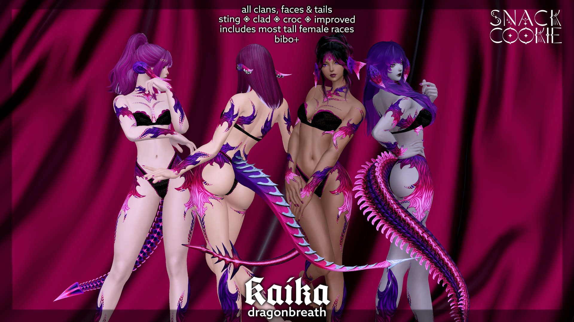 "Every flower must grow through dirt"This set had a mixture of inspirations to create it but it definitely fits the Valentine's day vibes with the purples, pinks and reds.THOSE IN PREVIEWS (in order for WCIF purposes):Anaya (@anaya.sanRumi (@babysugarriot)Starr (@xxstargoddessxx)Matilda (@justdegenerate)Vicente (@floridamanxan)IMPORTANT: Skin tone plays a vital role how colors show on skintones. Lighter skin tones, depending on the colors, will wash them out a bit and make them more white. Keep this in mind when trying out scales!!All original mods are required as this just contains diffusesDragonbreath by BMM: https://heliosphere.app/mod/q893n92ct517kbe862g9rgtg1gSting Tail by WLT: https://www.xivmodarchive.com/modid/110940Improved Tail by WLT: https://www.xivmodarchive.com/modid/110364Croc by WLT: https://xivmodarchive.com/modid/110939Clad by WLT: https://xivmodarchive.com/modid/126199You can find Transparents on Kofi (free)Link: https://ko-fi.com/s/e289df63b8If you need any help with my mods, WCIF from the previews, join a great community, see future projects, booster perks or possibly even want a commission, it can be found in the Snack Shack!Discord link: https://discord.gg/snack-shackUse #cookiemods for me to see all your beautiful OCs!!