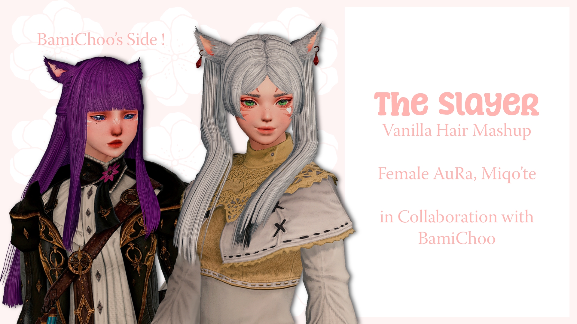 A Vanilla Hair Mashup !Replaces hair 107For Fem AuRa, Miqo'teHighlight CompatibleNOT Hat CompatibleVanilla and Earless Miqo'te Ears options(There may be some clipping with AuRa horns ! I do my best to try to minimize it but some clip more than others, I apologize !)Find BamiChoo's side here ! > https://trello.com/c/7nrCy1b4/84-✧-the-apprenticeHairs made in collaboration with my lovely friend BamiChoo inspired by the show Frieren: Beyond Journey's End ! Check out her side for Fern's "The Apprentice" style ! find her here > https://bsky.app/profile/bamichooxiv.bsky.socialuse #guavaxiv on twitter !-