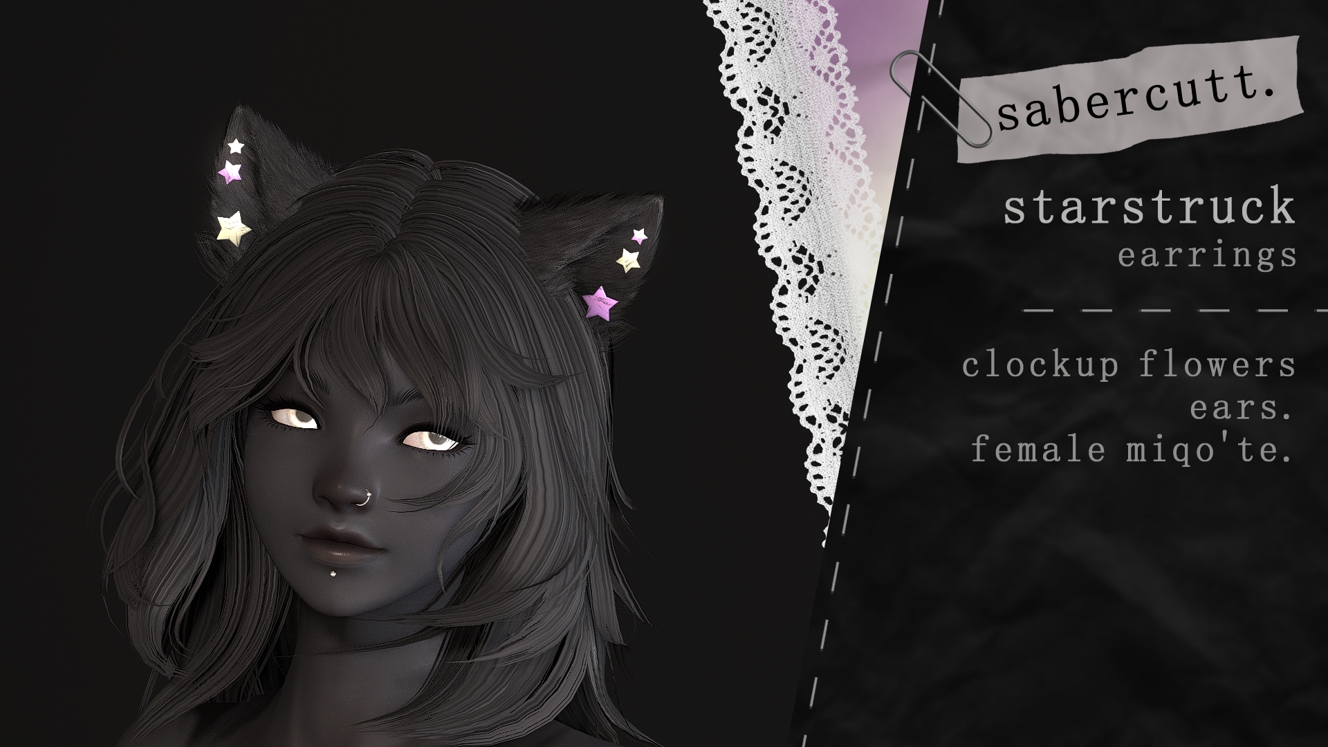 — info・ replaces omega-f earrings・ female・ miqo'te・ fitted for dvno's clockup flowers ears (https://payhip.com/b/BxQCU)・ dual-dyable, full color wheel dyability for each part in glamourer → palette icon next to the equipped gear OR in penumbra → advanced editing → materials tab— please note・ i made this mod from scratch using blender・ the triangle amount for this mod is 1248・ my mods are not made with customize+ editing in mind, therefore it may clip, stretch or otherwise be out of place if you use customize+ on your characterko-fi → https://ko-fi.com/sabercuttlily pad lobby → https://discord.gg/GCzVerCaEqusage terms &