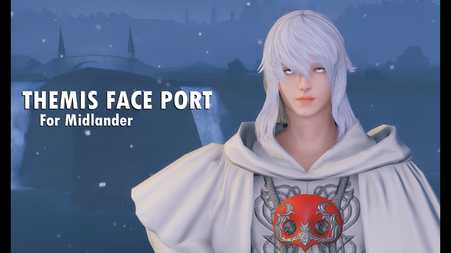 Themis Face Port For Male Midlander Face 2Not a completely accurate port cause he has a weird head shape.Mouth and teeth are still vanilla face 2Potential issues:- Most of the bones should work as they should, so most if not all vanilla emotes should work correctly. Extreme poses may have issues.- Some shadow may look weird with certain angles and lighting.- Somewhat visible neck seam, because the world is cruelThis is not a planned project, just something I spontaneously wanted to do as an experiment. If you notice any glaring issues feel free to send me a message on discord (noelaranea)