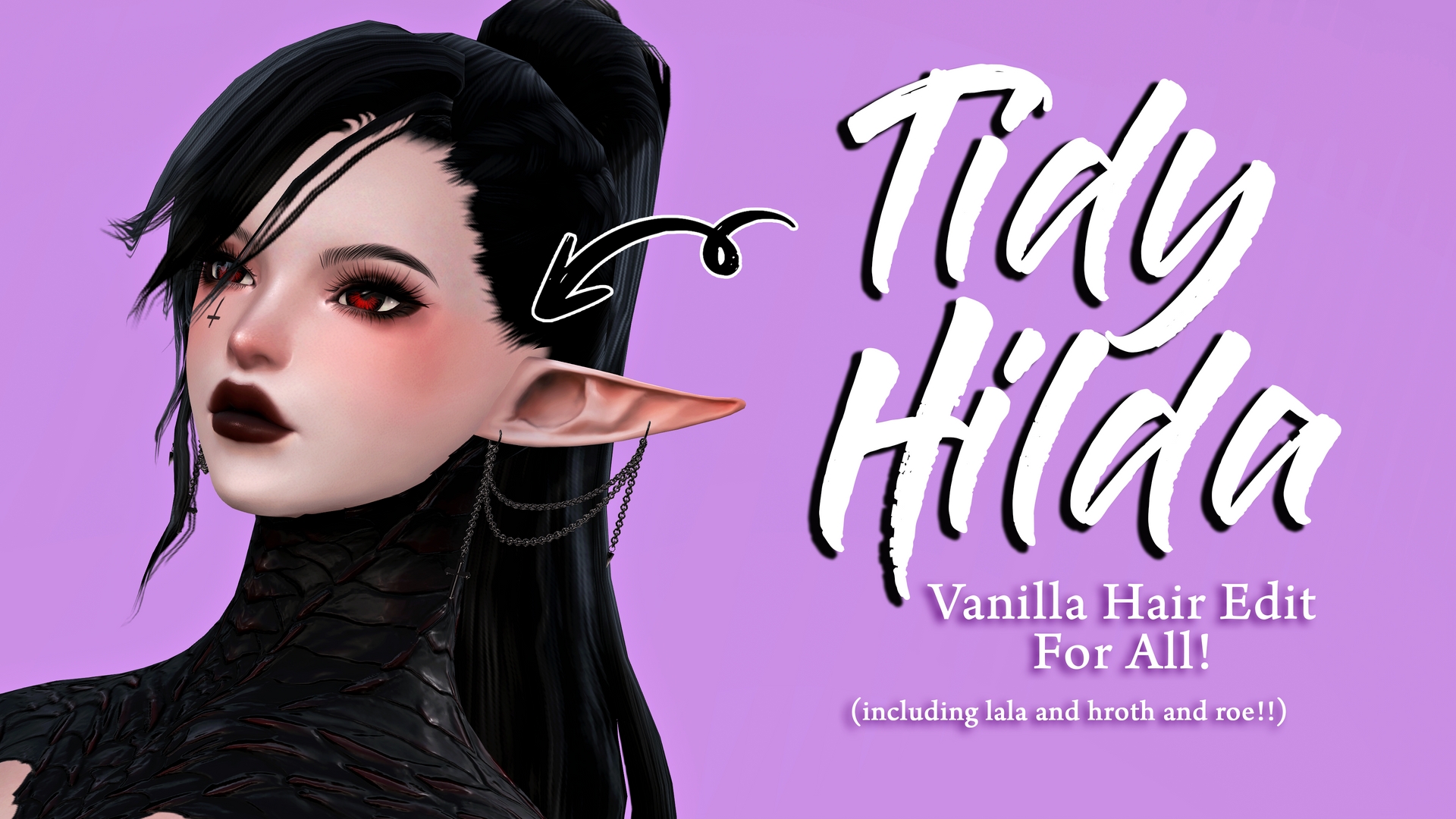 Small vanilla edit of the new Hilda hair. I really didn't like the little flyaway things it has going on. Works for ALL! What's been removed: flyaways on the ear + flyaways on the back of the hairGeneral